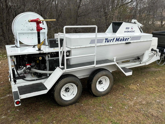 TurfMaker Hydroseeder | Model 800 (Gas Engine) | Total Capacity 800 Gallons | Skid Frame Width 47" | Double Axle Trailer Option