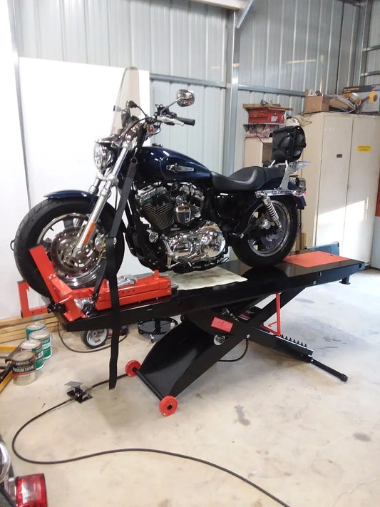 Black Widow Deluxe Motorcycle Shop Kit | Model BW-SK-D | Platform Size 78" x 47" | Lift Height Range Up To 33" | Capacity 1,000 lb | For Street, Touring & Cruiser Bikes
