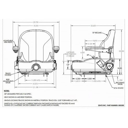 Swisher Premium Operator Seats | High-Back Suspension Seats with Armrests | | For Zero-Turn Mowers, Tractor, ATVs & UTV