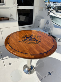 Mariteak 36" Round Table With Marlin/Compass Rose Inlay-High Gloss Finish