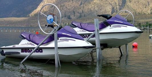 Boat Lift Distributors | Storm Surge | Model SS 2,000 LB Dual PWC Lift | Track Length 16′ | Capacity 2,000 lbs | Weight 600 lbs | For Jet Skis & Small Skiffs