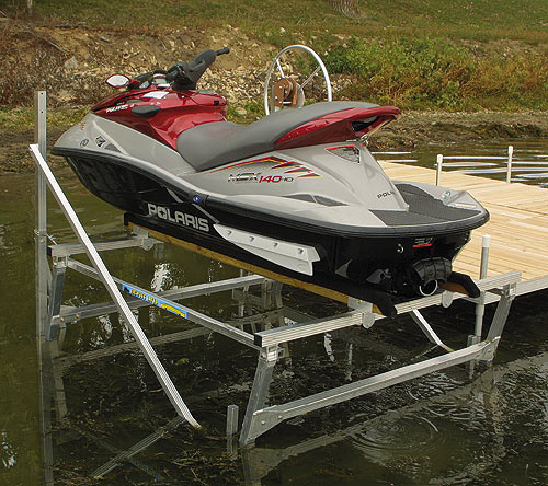 Boat Lift Distributors | 1200 lb Hewitt PWC Lift (Single) | Length 102″ | Inside Width 96″ | Capacity 1,200 lbs | Rust-Free Aluminum | Manual & Electric & Solar Winch | For Personal Watercraft