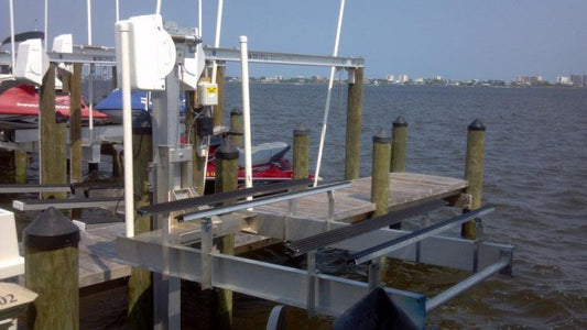 Boat Lift Distributors | Storm Surge Multi PWC Lift | Model 3,000 LB Capacity | 20' Dual Track | Supports 2-3 PWCs Up to 900 lbs Each | Marine Grade Aluminum | For Dock & Seawall