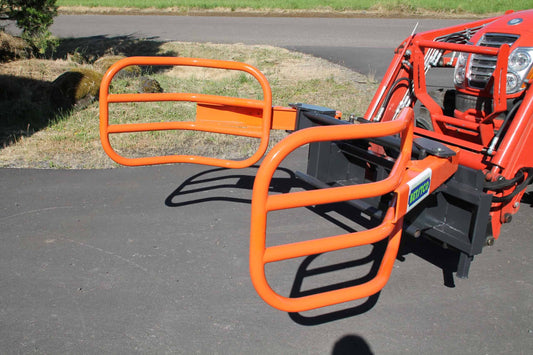 Farmer Helper | Round Bale Gripper | Model FH-BG130 | Width 31" To 60" | 2,600 lb Capacity | Hydraulic Flow 5 To 10 GPM | Horsepower 25 To 30 HP | For Skid Steers & Tractors