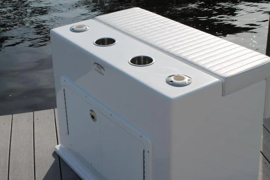 RIO MARINE CUSTOMS | Fiberglass Leaning Post with Cabinet | Model CMSFLP | 42" W x 24" D x 30" H | Stylish and Functional Seating | For 22' to 32' Feet Boats
