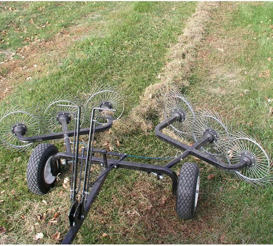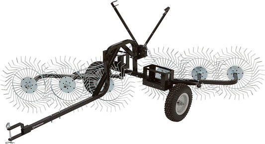 Field Tuff 48" Wide V-Style Acreage Rake – Tow-Behind with 4 Tine Reels For Tractor