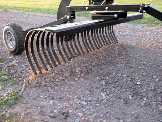 Field Tuff 48" Wide Landscape Rake – Heavy-Duty Steel with 24 Heat-Treated Tines | Towing Power 15–25 HP / 350cc+ | For ATVs, UTVs Tractors