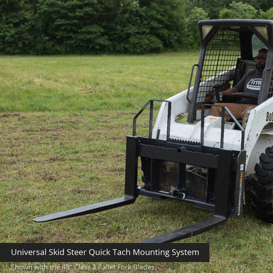 Titan Attachments Class 3 Step-Through Pallet Fork | 7,500 lb Frame | 48″–72″ Fork Blades | Oil Flow 10–25 GPM | For SSQA Skid Steers