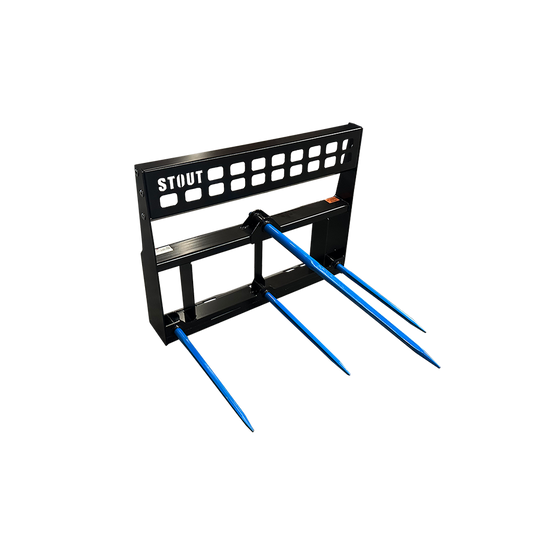 STOUT | Pro Round Bale Spear | Forged 3-Prong Design | 49" Main & 32" Side Spears | Weight 235 Lbs. | For Skid Steer