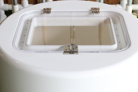 RIO MARINE CUSTOMS | Fiberglass Livewell with Clear Lid | Model RWLW100 | 33.5" D x 33" H | 100 Gallon Capacity | For Commercial Fishing