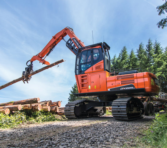 Develon | Log Loader | Model DX225LL-7 | Reach 35' 5" | Loading Height 29' 3" | 162.8 hp | 34.4 Tons | For Forestry & Logging