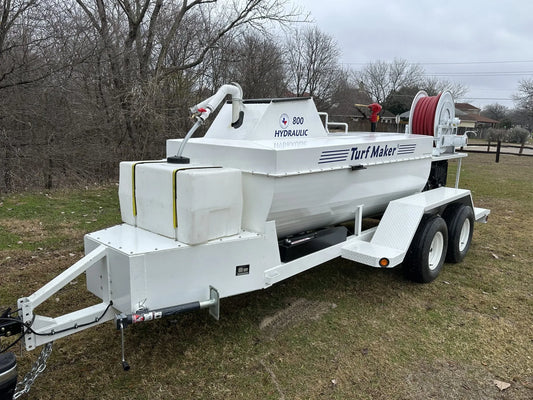 TurfMaker Hydroseeder | Model 800 (Gas Engine) | Total Capacity 800 Gallons | Skid Frame Width 47" | Double Axle Trailer Option
