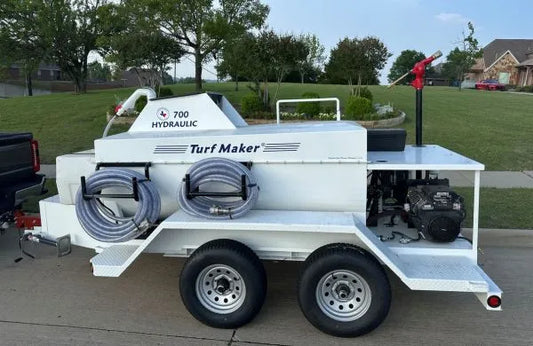 TurfMaker Hydroseeder | Model 700 (Gas Engine) | Hydraulic Drive System | Total Capacity 700 Gallons | Skid Frame Width 47" | Double Axle Trailer Option