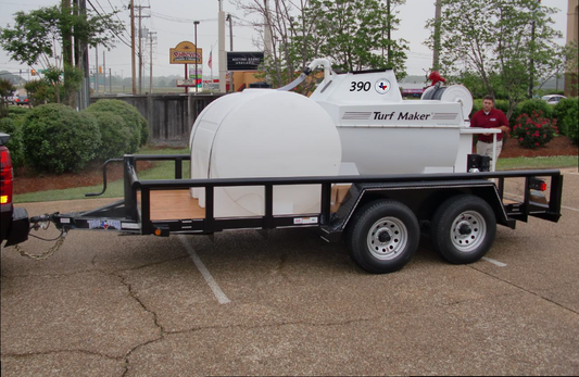 TurfMaker Hydroseeder | Model 390 (Mechanical) | Total Capacity 390 Gallons | Skid Frame Width 47" | Single Axle Trailer Option