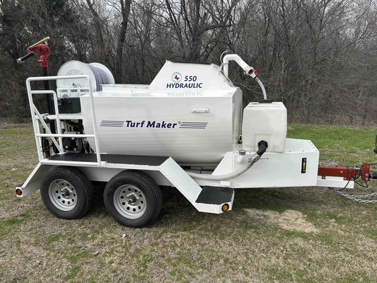 TurfMaker Hydroseeder | Model 550 (Mechanical) | Total Capacity 550 Gallons | Skid Frame Width 47" | Double Axle Trailer Option