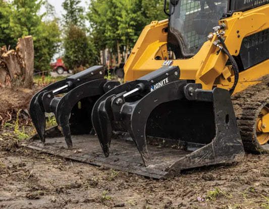 Ignite Attachments Rake Grapple | Working Width 66" | Overall Height 37.2" | Hydraulic Flow 12-16 GPM | For Skid Steers