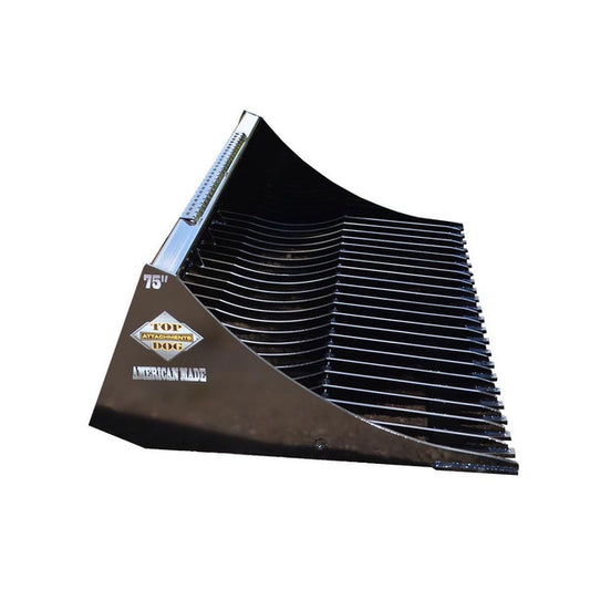 Top Dog Attachments Rock Bucket | Width 62" to 82" | Weight 530 to 660 lbs | Oil Flow Range 15 to 25 GPM | For Skid Steer