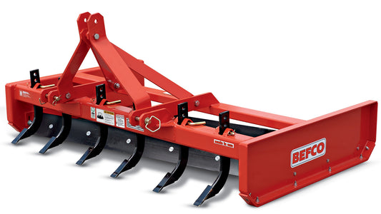 BEFCO | Grading Scraper (Land Plane) | Model BGS Series | 48″ To 84″ Width | Adjustable Rippers & 1/2″×6″ Blades | Cat. 1 Quick‑Hitch | Horsepower 16 To 65 HP | For Tractors