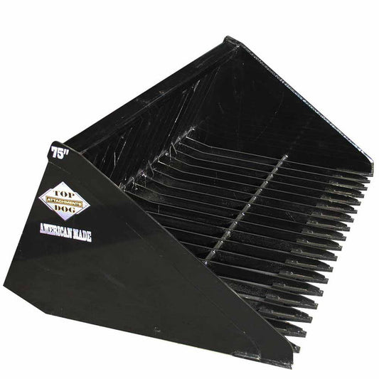 Top Dog Attachments Rock Bucket | Width 62" to 82" | Weight 530 to 660 lbs | Oil Flow Range 15 to 25 GPM | For Skid Steer