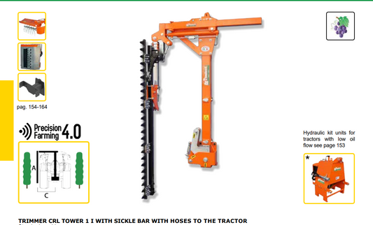 Rinieri Pruning Machine CRL Tower-1 I with Sickle Bar | Hydraulic Lifting and Tilting for Tractor