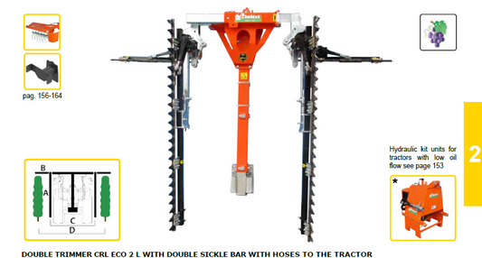 Rinieri Double Trimmer CRL ECO 2 I With Double Sickle Bar With Hoses to the Tractor | 59"-83" Cutting Width for Tractor