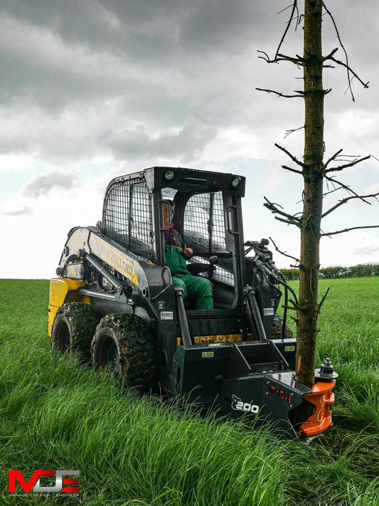 MDE Machinery | Tree Shear | Model Koala 200, 300 & 400 SLS | Cutting Capacity 8", 12" & 16" Inches | Hydraulic Flow 10.39-31 GPM | For Skid Steer