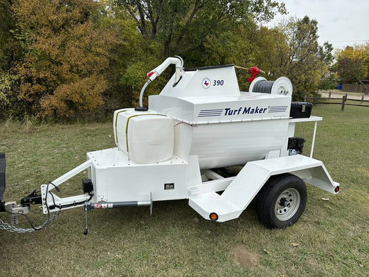 TurfMaker Hydroseeder | Model 390 (Hydraulic) | Total Capacity 390 Gallons | Skid Frame Width 47" | Single Axle Trailer Option