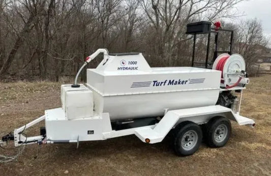 TurfMaker Hydroseeder | Model 1000 (Gas Engine) | Total Capacity 1000 Gallons | Skid Frame Width 47" | Double Axle Trailer Option