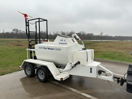 TurfMaker Hydroseeder | Model 550 (Hydraulic) | Total Capacity 550 Gallons | Skid Frame Width 47" | Double Axle Trailer Option