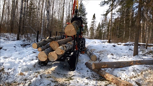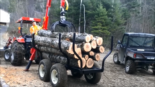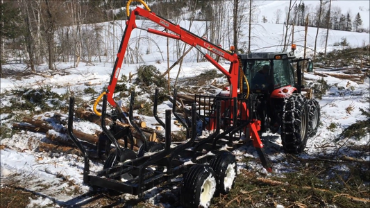 Woody Equipment 8' 9'' Forestry Trailer Model 9-58 HV with Gooseneck Log Loader Model 105 HD | Pull Type | 20 HP - 40HP | For Compact Tractors