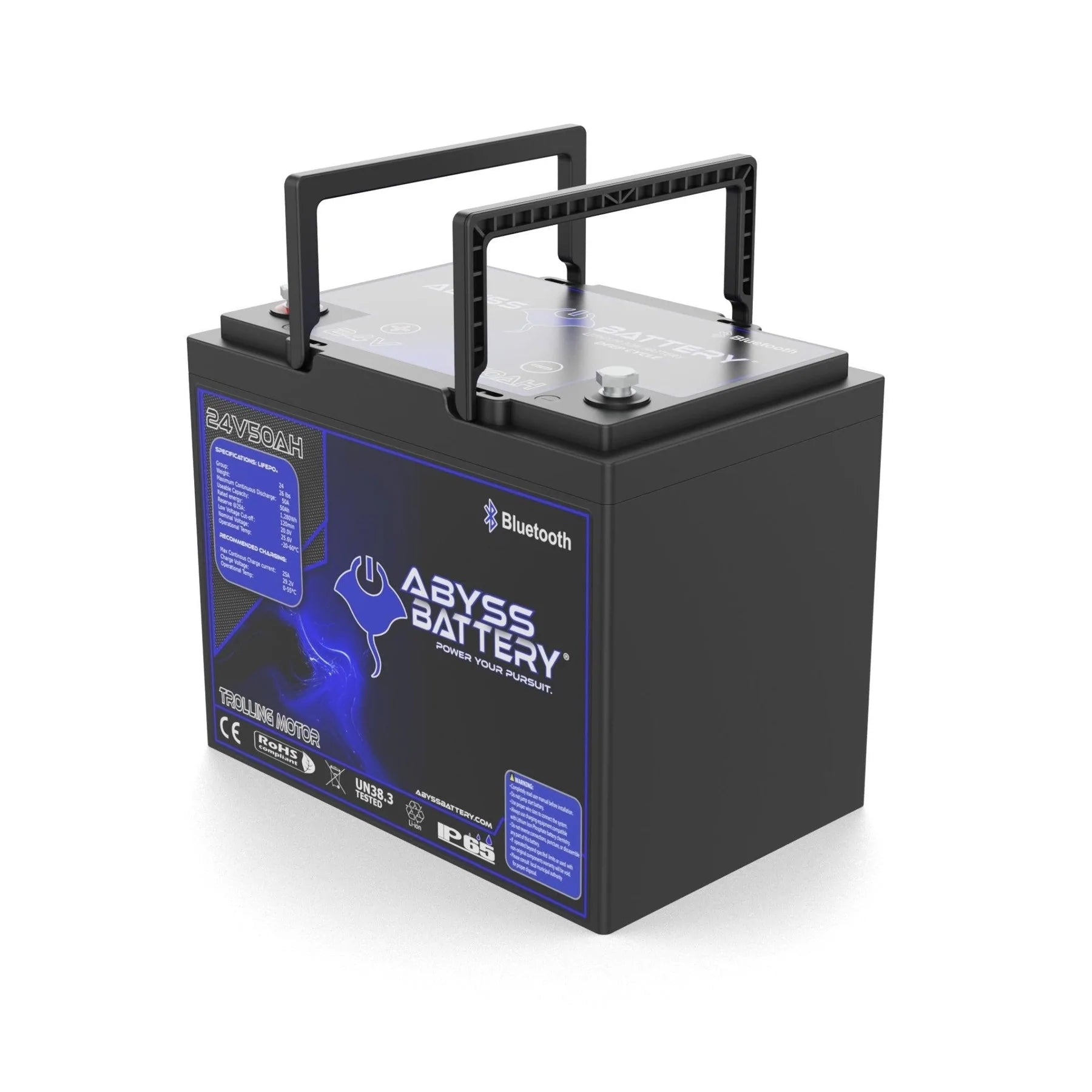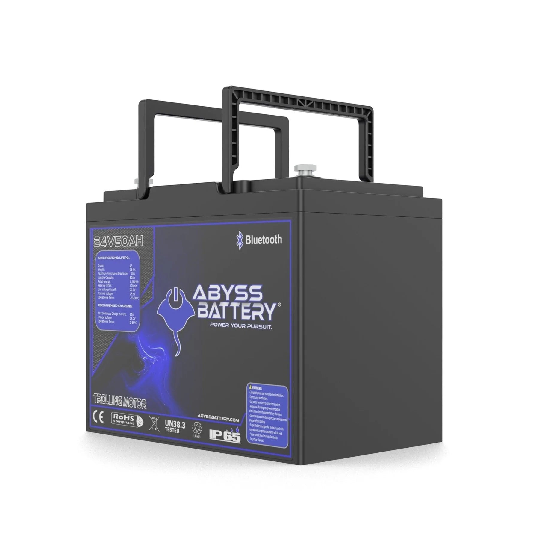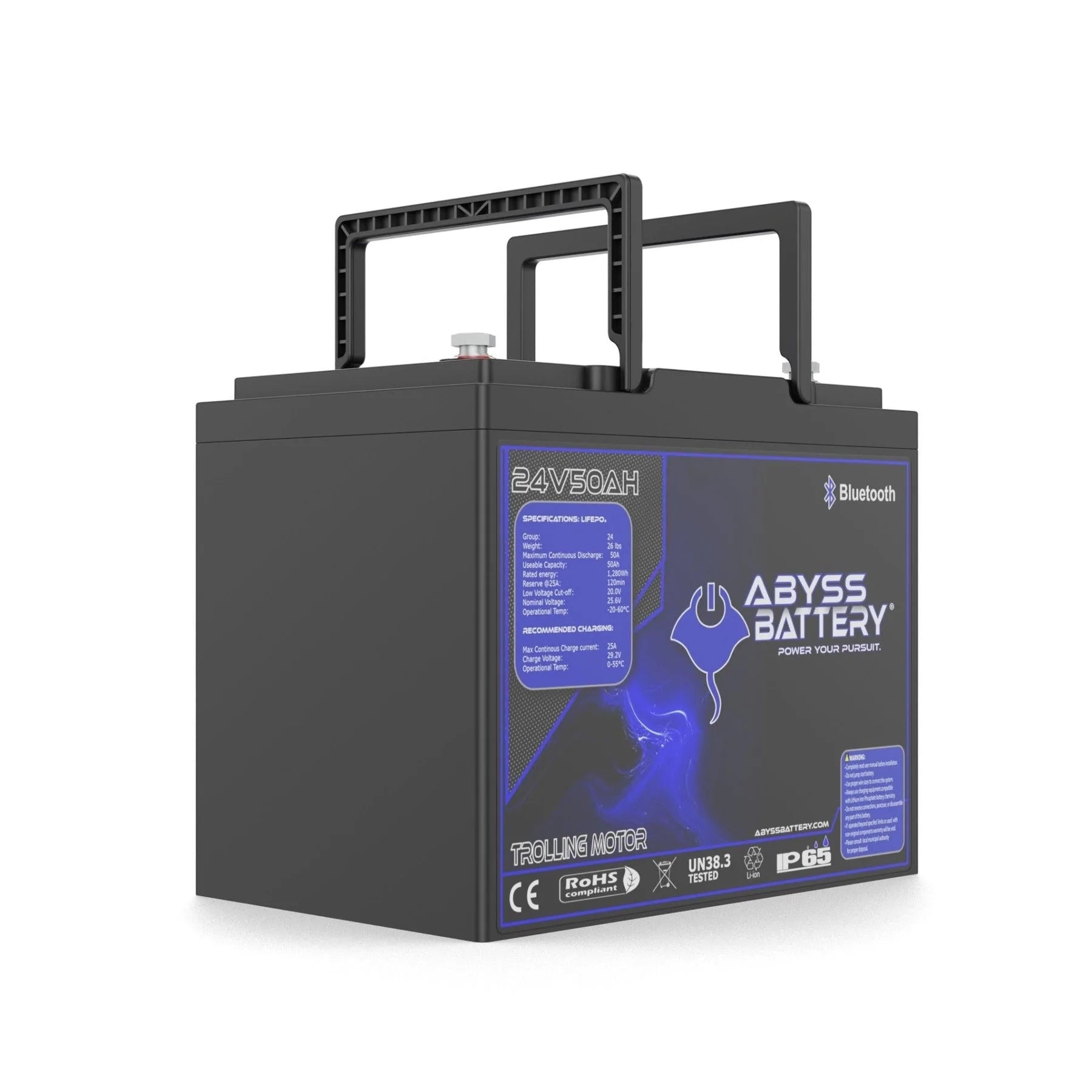 Abyss® | Lithium Trolling Motor Battery | Model AB-24V50-BT | Group 24 | Voltage 24V 50Ah | Bluetooth BMS | Built-In Heating | IP65 Waterproof