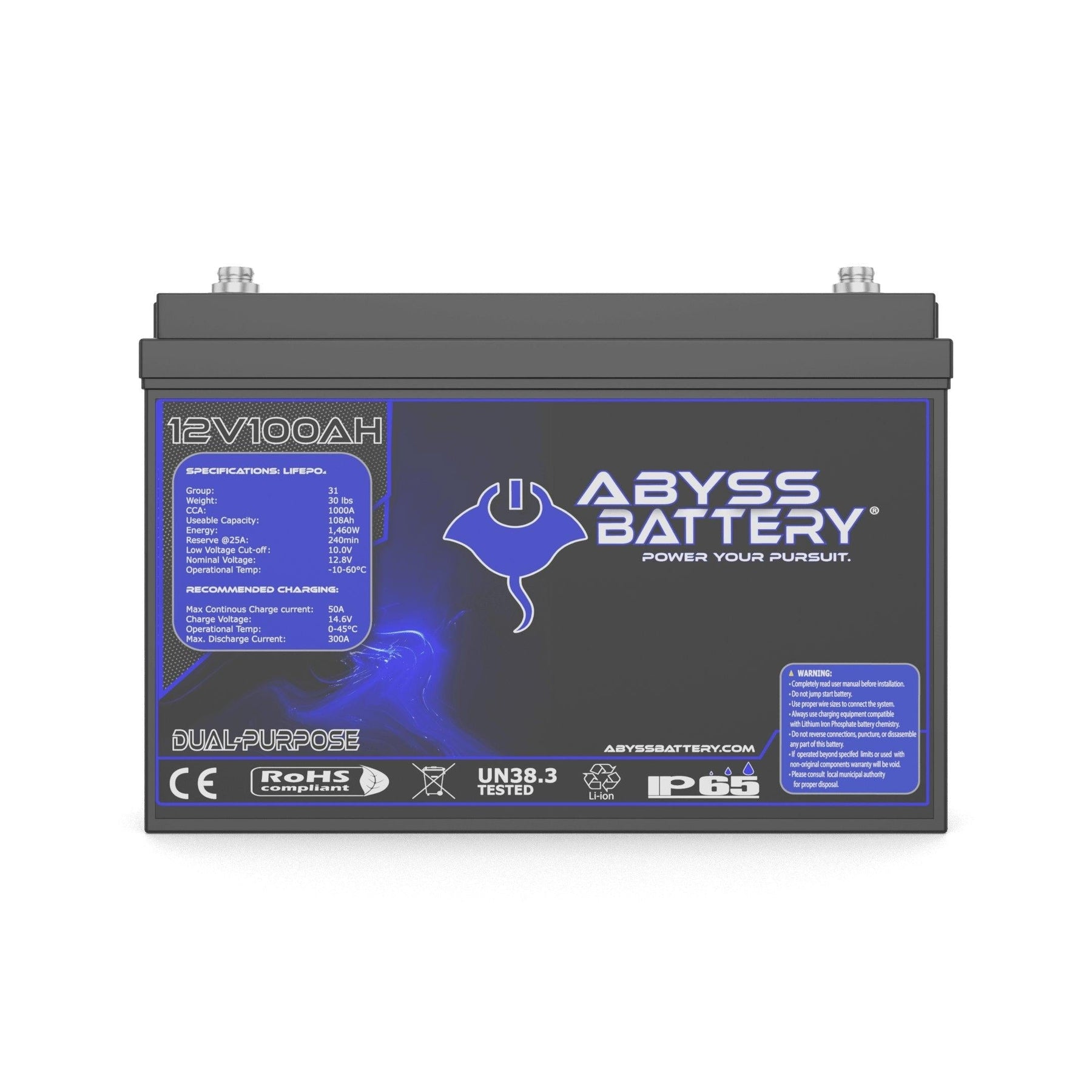 Abyss® | Marine Lithium Battery | Model AB-12V100-DP | 1500 CCA / 100Ah | Group 24 | Dual Purpose Cranking & Deep Cycle | Bluetooth BMS | Built-In Heating | IP65 Waterproof