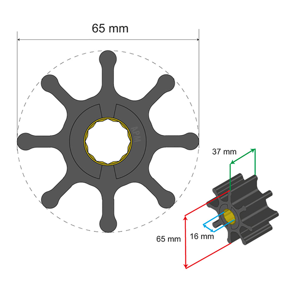 Premium Impeller Kit 65 x 16 x 37mm - 8 Blade - Spline Insert