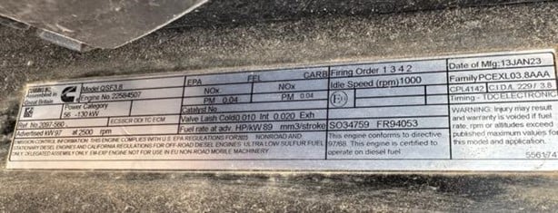 Engine Serial Number | 22584507 |