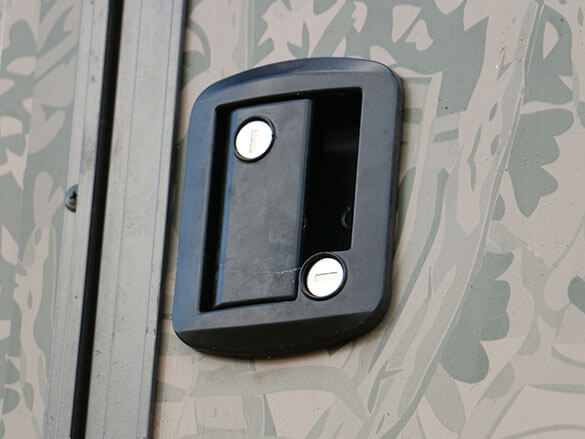 - Full Walk-Through Door Easy entry/exit with a secure keyed lock to keep your gear safe.