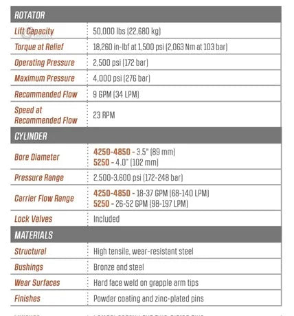 BARKO Log Grapple | 2023 Model 5250 | 52" Opening | 1,600 lbs | Custom Links | For Forestry Equipment