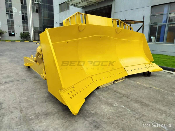 The Bedrock Attachments Heavy-Duty D8T U Blade is built for superior strength and efficiency in extreme excavation conditions, offering unmatched performance for professionals in need of reliable equipment. Crafted from high-strength alloy steel, it ensures optimal dozing, material handling, and precision cutting. With replaceable end plate wear shrouds and severe service cutting edges, it delivers maximum resistance against abrasion and impact, extending service life in demanding environments.