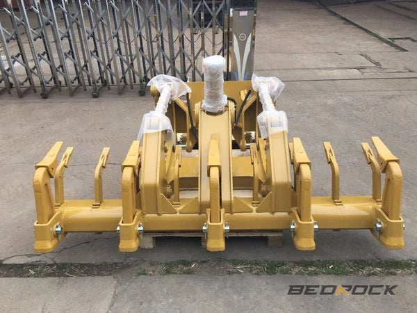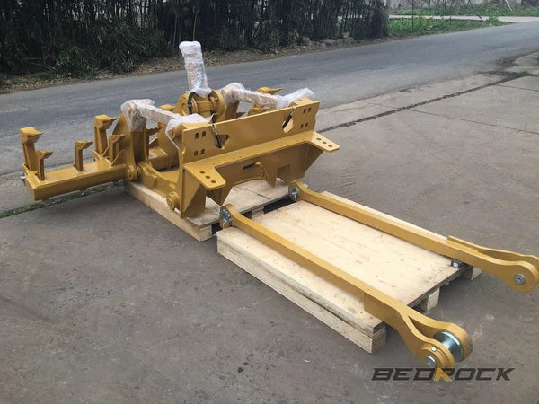 The Bedrock Attachments Multi-Shank Ripper (Model MR03) is designed for CAT motor graders, including models 12M, 140M, and 160M, offering exceptional ripping performance for tough grading and excavation tasks. Featuring a parallelogram-style design, it includes five ripper shanks with tips and a single cylinder, ensuring efficient ground penetration and durability. The ripper is compatible with OEM-style parts, including cylinders and seal kits, for seamless integration and maintenance. Painted in OEM equipment yellow, it matches CAT motor graders perfectly. The ripper ships fully assembled with all necessary mounting hardware, making it ready for immediate use.