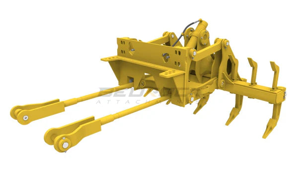 The Bedrock Attachments Multi-Shank Ripper (Model MR04-2) is designed for CAT motor graders, including models 140, 150, 160, 12H, 140H, 143H, 160H, 163H, 12K, 120K, 120K2, 140K, 160K, 12M, 12M2, 12M3, 140M, 140M2, 140M3, 14L, 16M, 160M, 160M2, and 160M3, offering exceptional ripping performance for tough grading and excavation tasks. Featuring a parallelogram-style design with a curved arm, it includes five ripper shanks with tips and a single cylinder, ensuring efficient ground penetration and durability. The ripper is compatible with OEM-style parts, including cylinders and seal kits, for seamless integration and maintenance. Painted in OEM equipment yellow, it matches CAT motor graders perfectly. The ripper ships fully assembled with all necessary mounting hardware, making it ready for immediate use.
