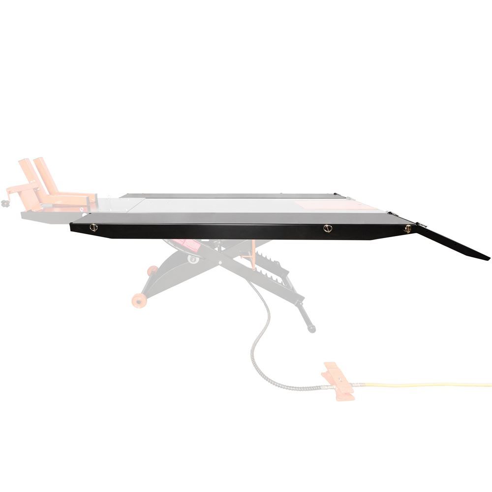 Crafted from high-strength steel, each 84" x 12" extension attaches securely using rugged extension rods and loop pins for a fast, frustration-free setup. The kit also includes two 20" ramps that hook effortlessly to the side extensions, creating smoother and more accessible loading for wider machines. With a 1,500-lb. capacity, this system supports everything from large ATVs to heavyweight cruisers, giving you the confidence and room you need to work efficiently. If you want more space, easier loading, and rock-solid stability, this extension kit is the professional upgrade your ProLift HD deserves.
