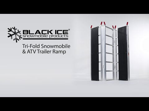 Models equipped with the lay-flat extension add an extra 5' 1.5" of length, reducing the initial climb angle and improving traction when starting the load. Versions with Caliber Ramp GRIPS stud protectors shield the ramp from stud damage while improving grip for studded tracks. When loading is complete, all versions fold down to a compact 17.5" width for easy transport and storage. Whether you ride stock or studded, trailer often, or load solo, this Black Ice snowmobile ramp system delivers reliability, safety, and rider-focused performance.