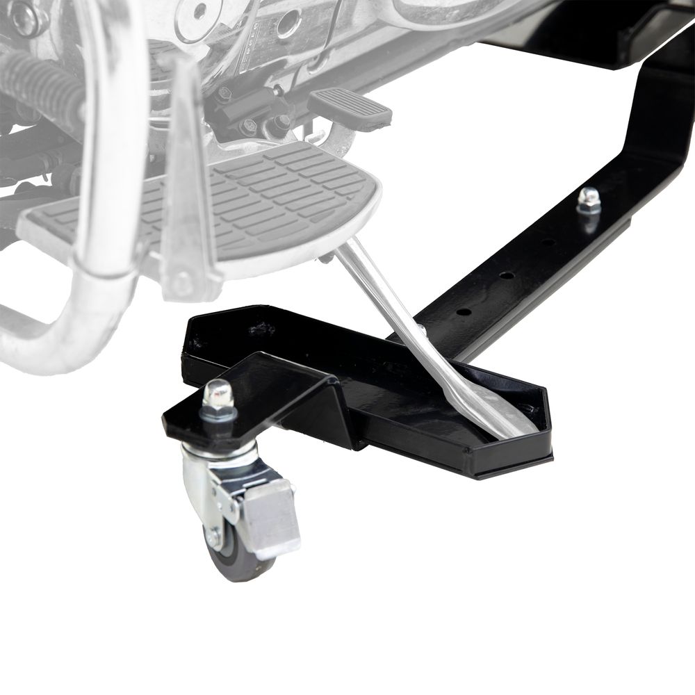 - Locking rear casters help secure the motorcycle in place once positioned, reducing unwanted rolling during storage or workspace organization