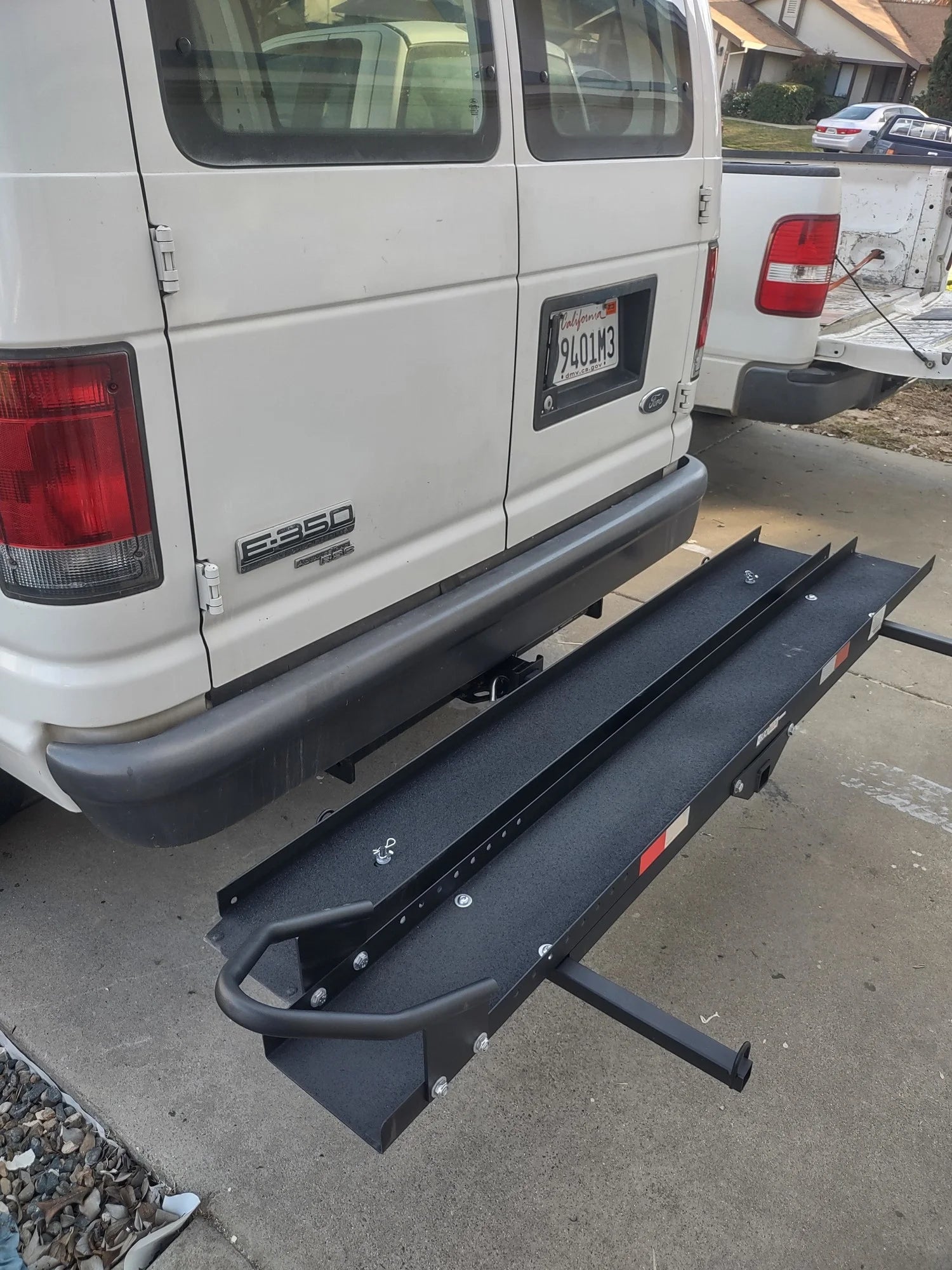 The Black Widow Heavy Duty Motorcycle Carrier MCC-600 is the ultimate solution for riders who want safe, reliable, and effortless motorcycle transport. Designed to carry motorcycles, dirt bikes, and scooters with wheels up to 7.25" wide, this hitch-mounted carrier installs quickly on Class III or IV hitches without the hassle of a trailer. Its extra-long 71" self-storing loading ramp and grit-coat traction surface make loading and unloading smooth, safe, and secure even on uneven terrain.
