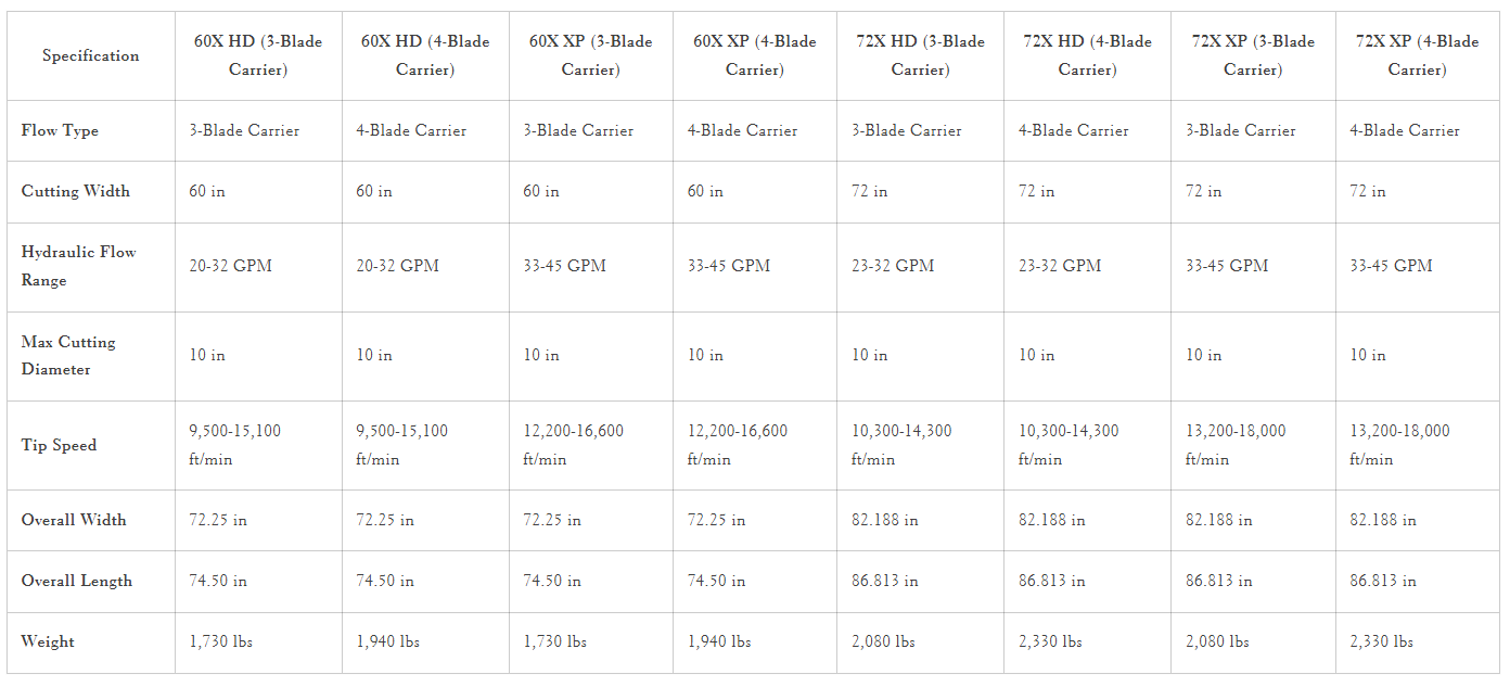 Specification | 60X HD (3-Blade Carrier) | 60X XP (3-Blade Carrier) |