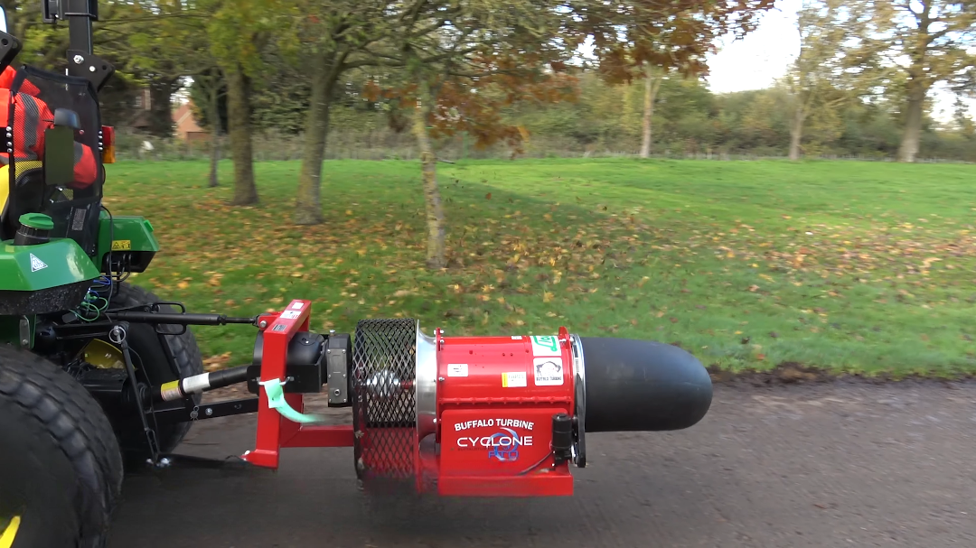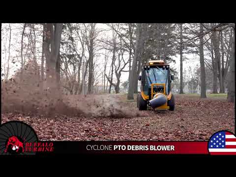The Buffalo Turbine BT-CPTO Cyclone PTO Debris Blower is engineered for effective debris management using tractor PTO power. With a recommended 20 HP PTO, this blower reaches up to 3,780 RPM, delivering powerful air velocity to clear leaves, grass, and debris efficiently. The 12V wired control provides easy 360° nozzle rotation, enabling precise airflow control. Constructed with a lightweight frame, this 245-pound attachment is easy to maneuver and mount. The blower includes a 12” aerospace polymer nozzle, with an optional aluminum nozzle upgrade for enhanced durability.
