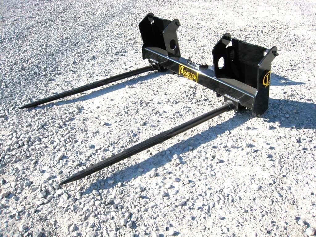 - Dual or Quad 49" Forged Spears – Available with 3 or 4 high-tensile spears, each rated at 3,500 lbs, ideal for safely moving large round or square hay bales.