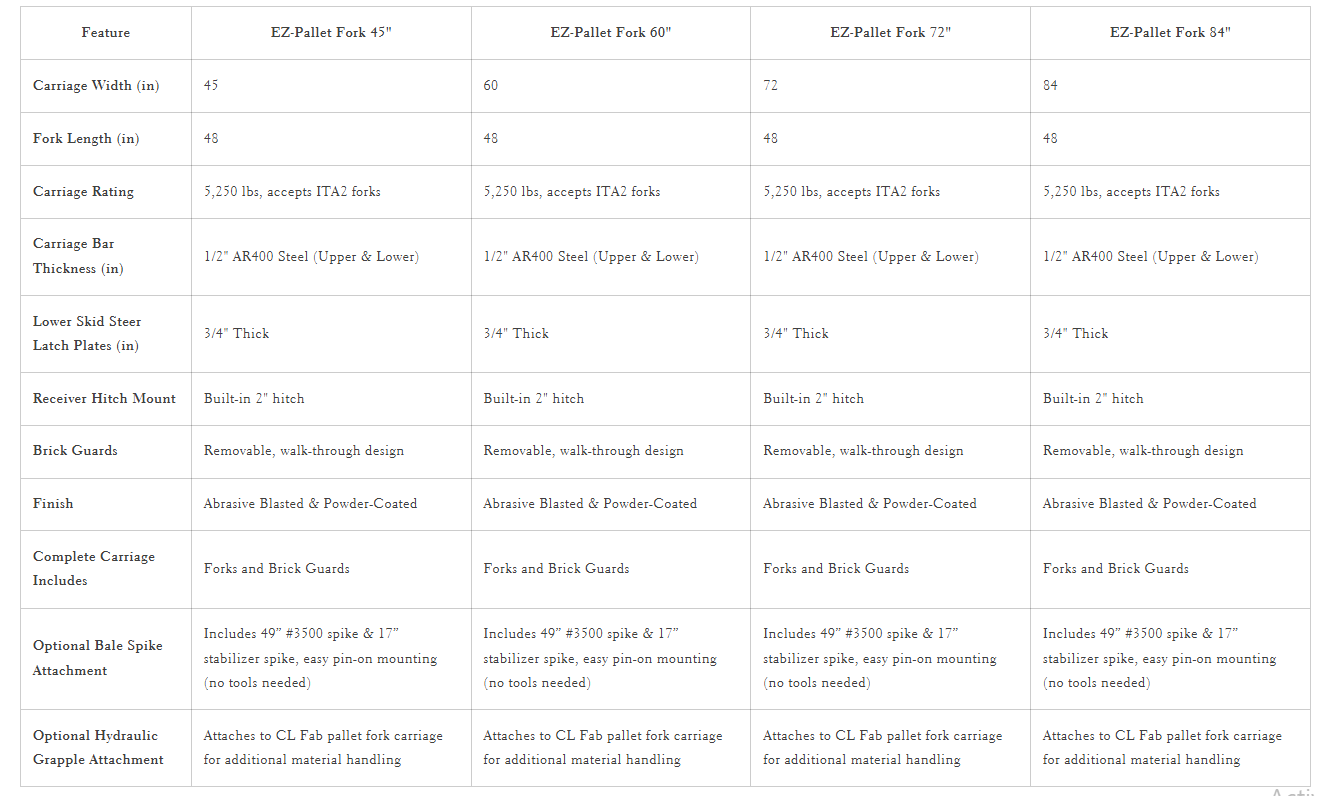 CL Fabrication EZ-Pallet Forks | Width 45" To 84" inches | Horsepower 50 To 100+ HP | For Tractor
