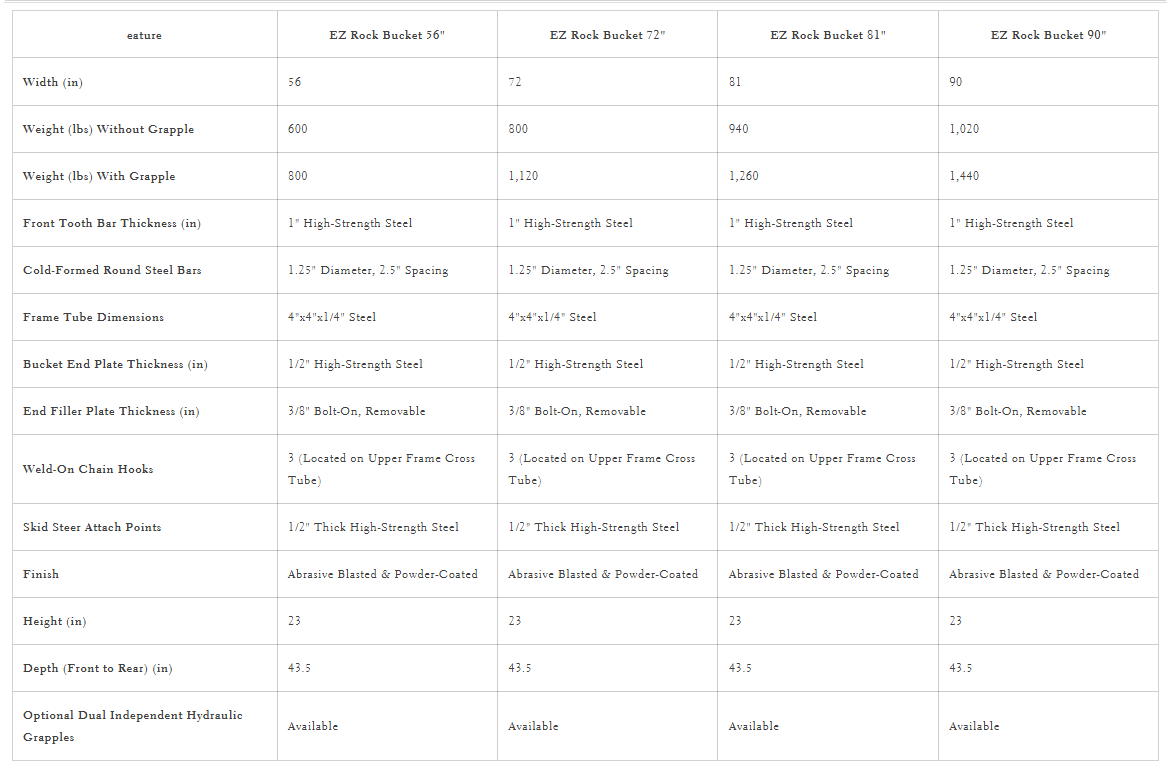The EZ Rock Bucket is a high-strength, low-profile attachment designed for large skid steers and compact track loaders. Featuring reinforced steel construction, optimized visibility, and optional hydraulic grapples, this bucket provides exceptional durability and efficiency in rock, debris, and material handling applications.