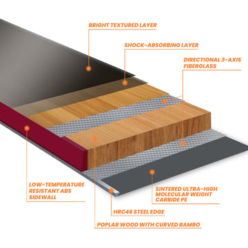 | Snowboard Deck Craft | Composite material with wood core, fiberglass, and carbon edge |