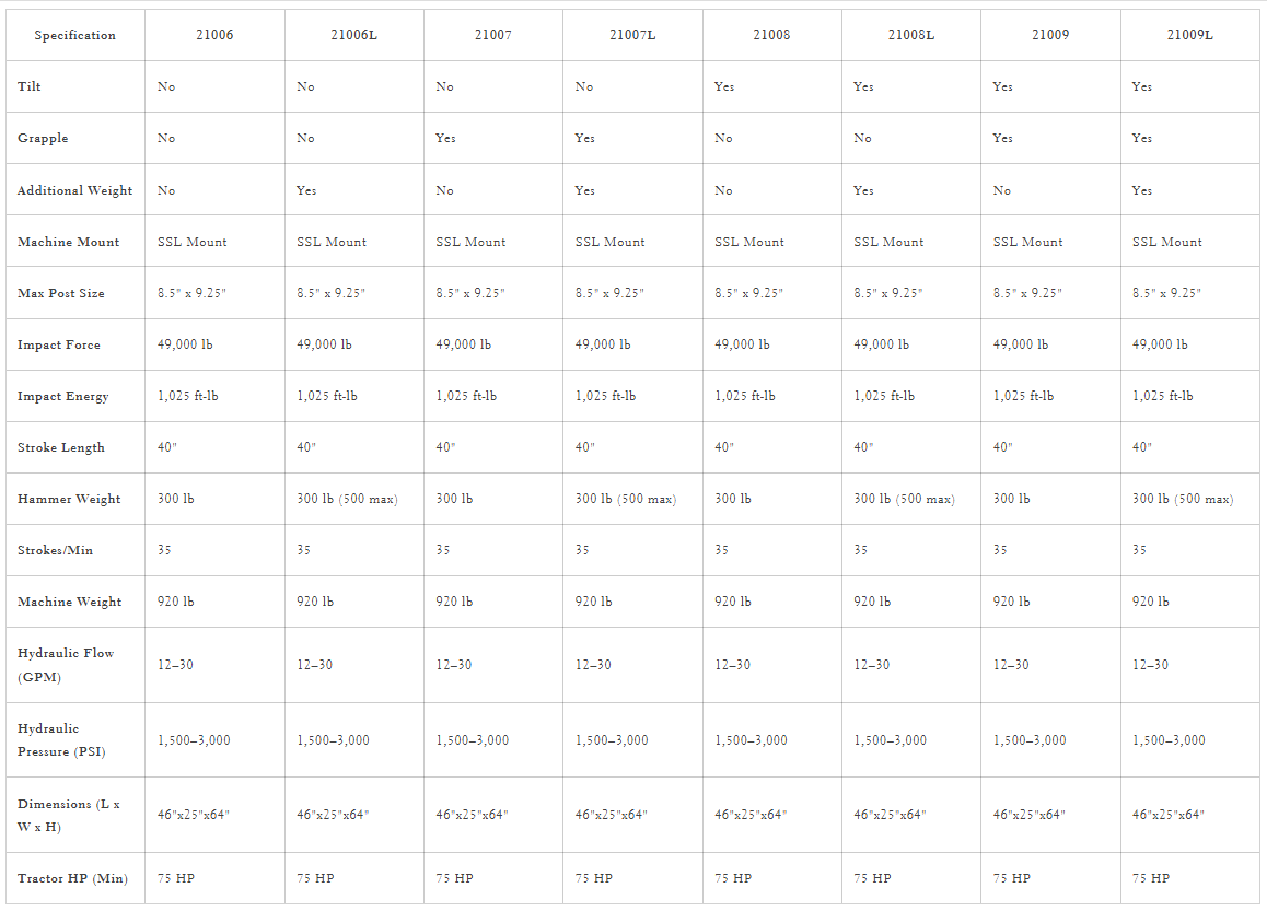 - Versatile Post Handling Drives T-posts, railroad ties, and 8.5″ × 9.25″ maximum-width pipes with ease.